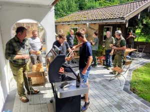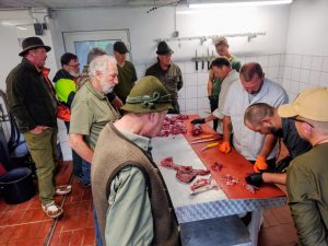 Nach drei Stunden konzentrierter, intensiver Arbeit waren die Rehe fachgerecht portioniert und bereit für den Einsatz in der heimischen Küche. Im Anschluss bot sich bei einer hausgemachten Grillwurst und einem kühlen Getränk in der gemütlichen Jagdhütte von Jürgen Hägele die Gelegenheit, das Gelernte gemeinsam zu reflektieren und Erfahrungen auszutauschen.